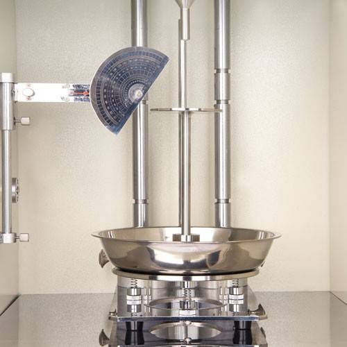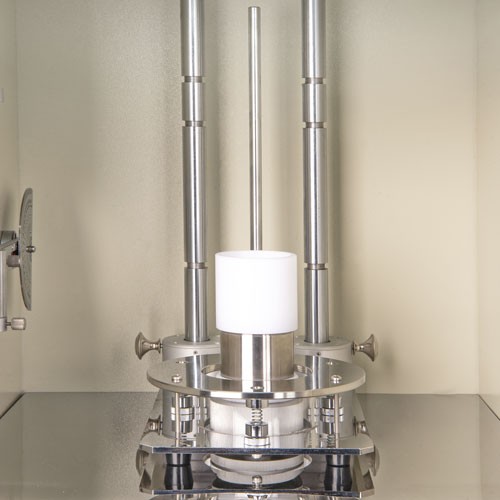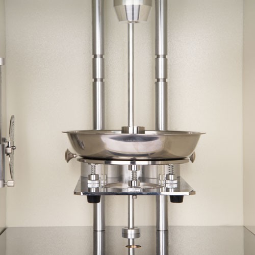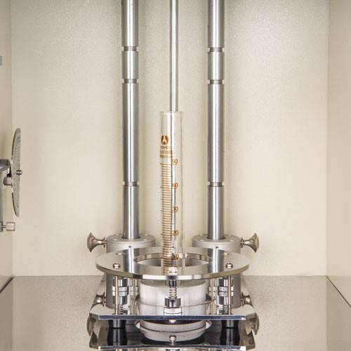PT-01粉体流动性测试仪提供了美国ASTM D6393-99标准(卡尔指数)中规定的测定方法,即冲击锤质量110克,冲击距离150mm.